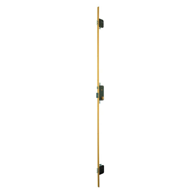 - Cerradura de embutir de tres puntos de cierre horizontales, cilindro tipo monoblock.