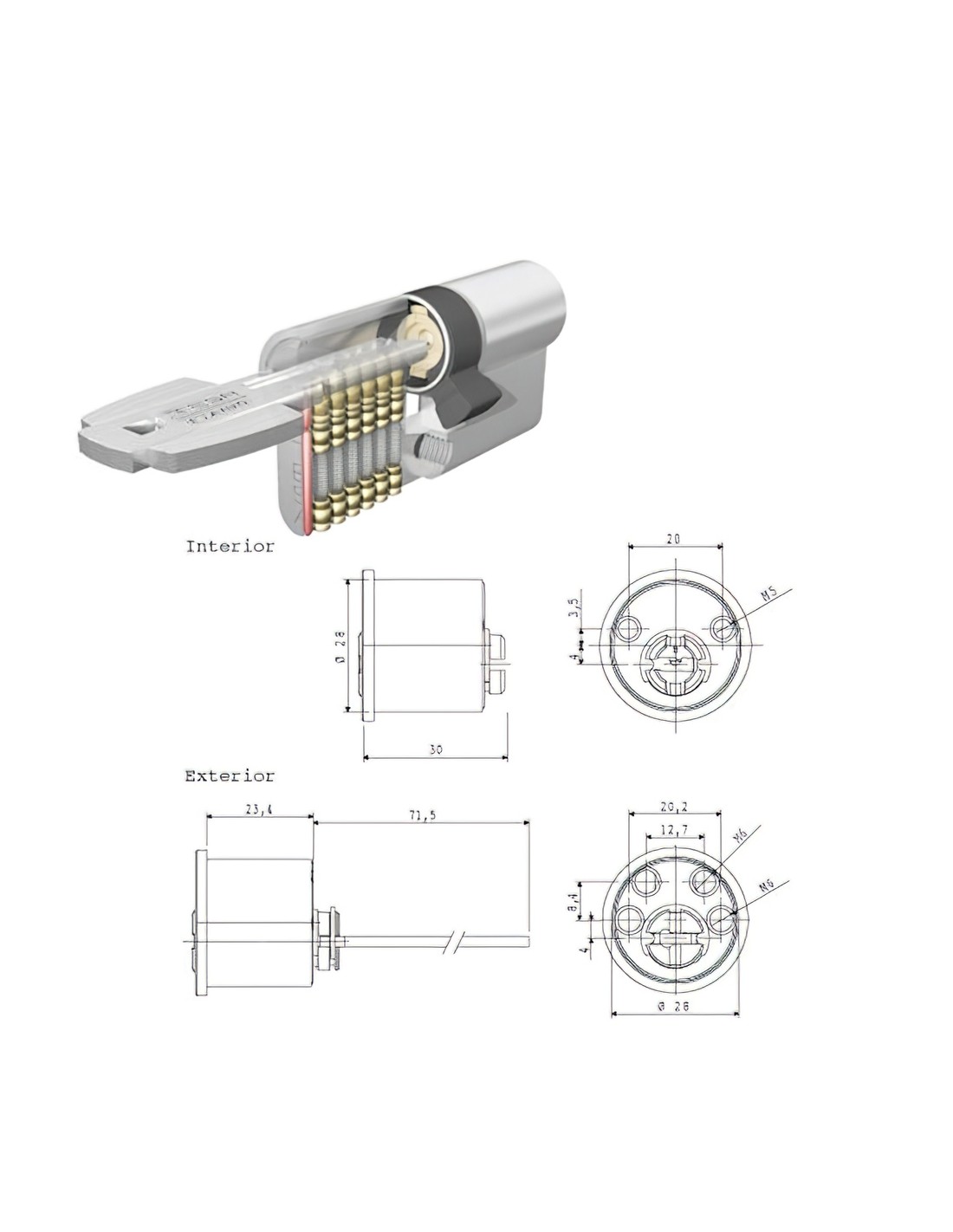 Cilindro Tesa Seguridad T6TS Rf Leva Corta Cilindro Redondo