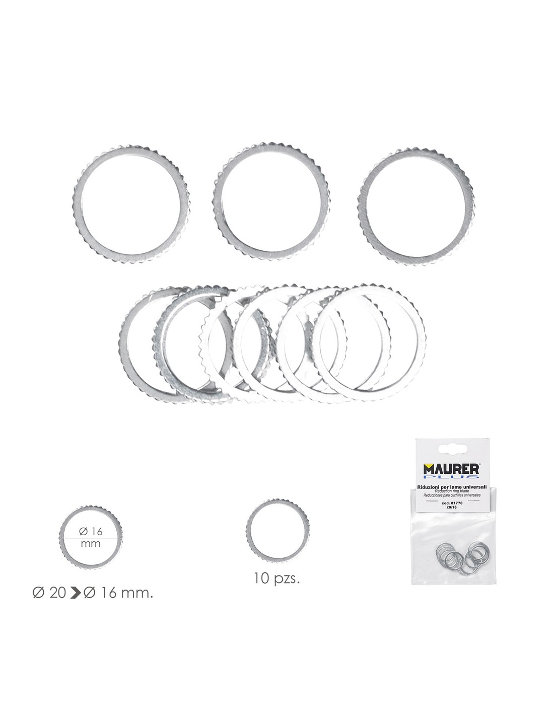 Adaptadores / Reductores Disco Corte Madera Ø 20 a Ø 16 mm. (Bolsa 10 piezas)