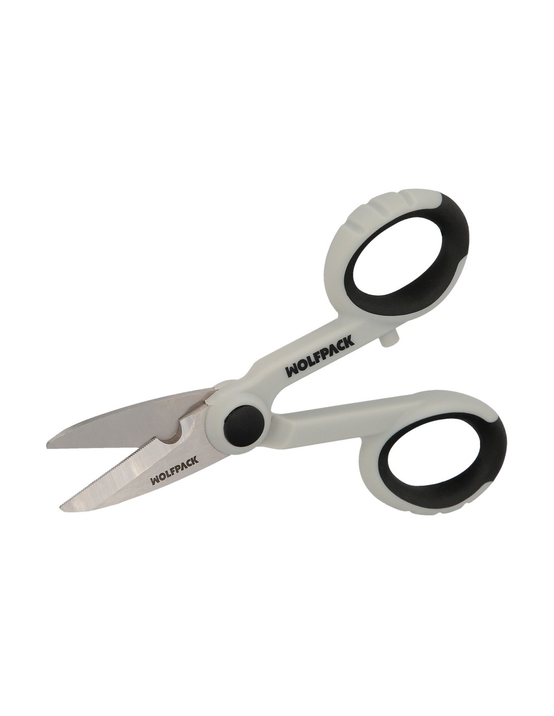 - Muesca en una hoja de la tijera para ayudar a pelar y cortar cables.